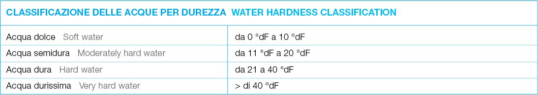La durezza dell’acqua è un parametro critico. In Italia si esprime in gradi francesi (°dF), dove 1 °dF corrisponde a 1 g di carbonato di calcio in 100 L di acqua.