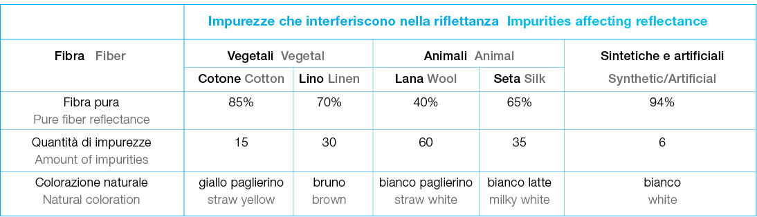 Il candeggio ottico, invece, maschera le tonalità gialle tramite coloranti fluorescenti che aumentano la riflettanza nella zona violetto-blu.
