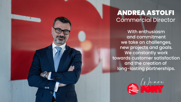 “Replacing Paolo Fumagalli,” says Andrea Astolfi, “as Commercial Director was a significant challenge. Paolo’s prominence in the industry is well known to everyone. For me, at Pony, it is a constantly stimulating challenge. Being able to collaborate with Paolo and the team is a major source of motivation. The goal is to continue identifying areas for improvement in everything we do. I’ve found at Pony a team of highly skilled professionals who give vitality to my daily work. I strongly believe in people as valuable resources, and this is where the idea for the ‘We are Pony’ campaign, which we recently launched, originated”.